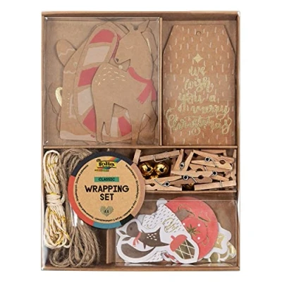 folia 12120 Wrapping Set Classic 44 Piece Packaging for Making Pretty Gift Tags Christmas, Multi