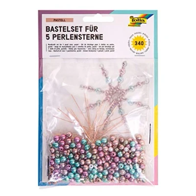 Shiny wire stars with coloured beads. DIY craft kit Colour: rose / turquoise / grey. Contents: 340 pieces, for crafting 5 stars. Beautiful decoration for your home., Manufacturer: Max Bringmann KG