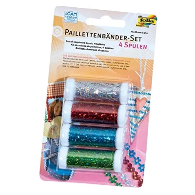 Sequin ribbon set 4 bobbins, assorted colours 4 x 3 m sequin ribbon (width 6 mm) Can be used to embellish your Craft, Card Making, Scrapbooking, etc