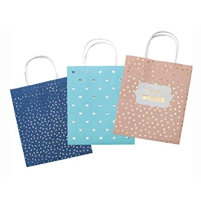 folia 21222 Paper Bags Hotfoil Made of Kraft Paper, Gift with Hot Foil Embossing, Pack 12, Approx. 12 x 5.5 15 cm, Assorted Colours in 3 Designs for Crafts, Decorating and Gifting