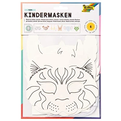 Masks for children to design yourself Contents: 6 animal masks (1 x rabbit, elephant, dragon, horse/unicorn, cat and dog) Colour: white Includes elastic band Ideal for imaginative play, for children's birthdays, boys and girls, Manufacturer: folia