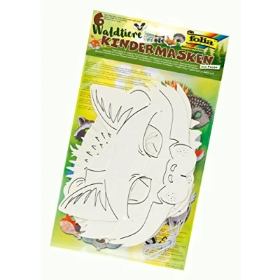 folia 23259 Children's Masks Forest Animals Cardboard Assorted Designs Pack of 6 White for Painting and Design Yourself Children, Boys Girls, Ideal Birthday Parties