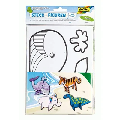 4 pre-cut figures Shape: whale, tiger, dinosaur and elephant Made from strong white cardboard Both sides with pre-printed contours For painting and gluing, Manufacturer: folia