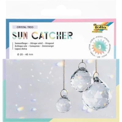 folia 23849 Sun Catcher Crystal Trio Pack of 3 Glass Suncatchers with 16 m Metallic Yarn, Diameter 2, and 4 cm Crystals for Hanging, Transparent/Gold