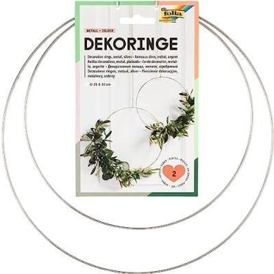 folia 24203 Decorative Rings in Silver, Metal for Crafts, 2 Pieces 25 cm and 30 Diameter, Thickness Approx. 3 mm