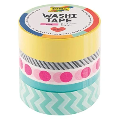 folia 26442 Washi Tape Neon Pink Rice Paper Set of 5 Ideal for Decorating and