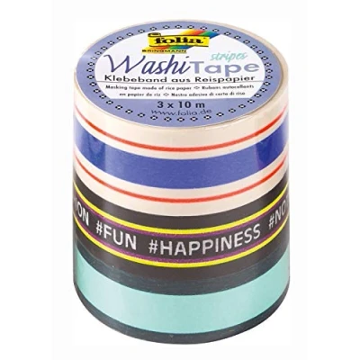 folia 26443 Washi Tape Stripes Neon I Set of 3 Rice Paper Ideal for Decorating and