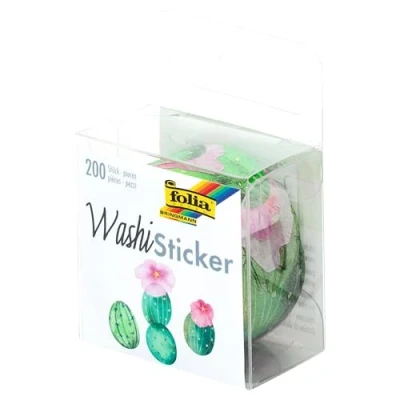 Folia 26501 Washi Stickers, Pre Cut Shapes Made of Rice Paper, 200 Pieces on a Roll, Ideal for Decorating and Decorating, Colourful, One Size