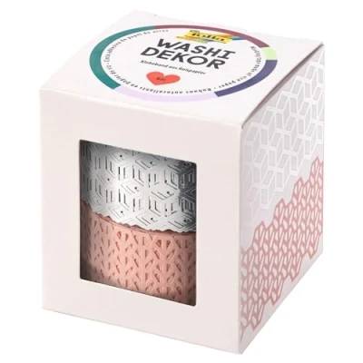 folia 29202 Washi Decor, Lace Borders Made of Rice Paper, Set 2, Rose/Silver, Each Approx. 25 mm x 5 m, Sticks to Numerous Surfaces, Can Be Removed Without Residue for Decorating and
