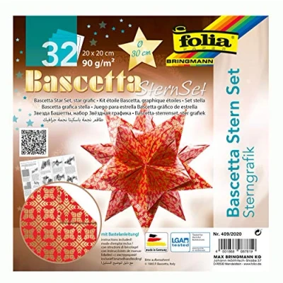 folia 409/2020 Craft Set Bascetta Star Graphic Red/Gold, 32 Sheets, 20 x cm, Finished Size of Paper Approx. 30 with Detailed Instructions (English Language not Guaranteed) Ideal for