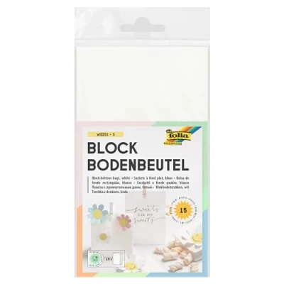 folia 41100 White Paper Bags with Block Base, Food Safe Bottom Made of Kraft Paper, 17.5 x 10 5.5 cm, for Wrapping Biscuits and Sweets
