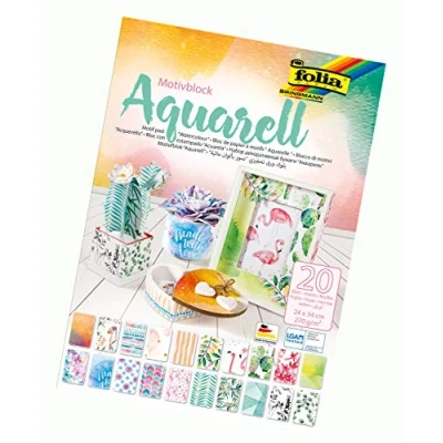 folia 48749 Watercolour Motif Pad 20 Sheets Approx. 24 x 34 cm 270 g/m² Assorted in Different Designs for Crafts and Creative Design of Cards, Window Pictures Scrapbooking