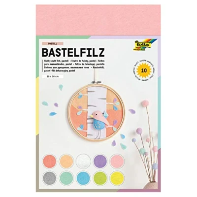 Craft felt with fine wool quality Colour: assorted in 10 different pastel colours Contents: 10 sheets, 150 g/m² Dimensions: approx. 20 x 30 cm International products have separate terms, are sold from abroad and may differ from local products, including fit, age ratings, and language of product, labeling or instructions., Manufacturer: folia
