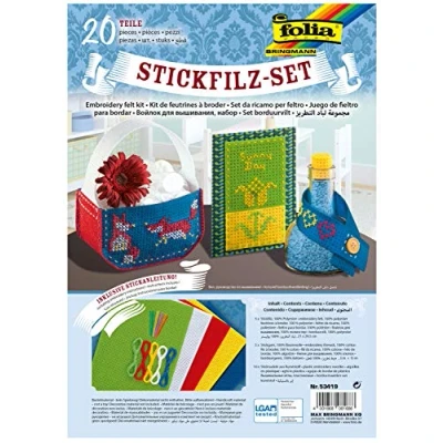 folia 53419 Embroidery Felt Set, 20 Piece Craft Assorted Colours, Approx. 21 x 29.5 cm, Includes Instructions, Ideal for Various Works, Multi Coloured