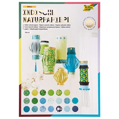 Pad with colour-coordinated, handmade papers Colours of India series Each sheet has a different finish 20 sheets in DIN A4 format Multiple creative possibilities (greeting cards, scrapbooking, etc.), Manufacturer: folia
