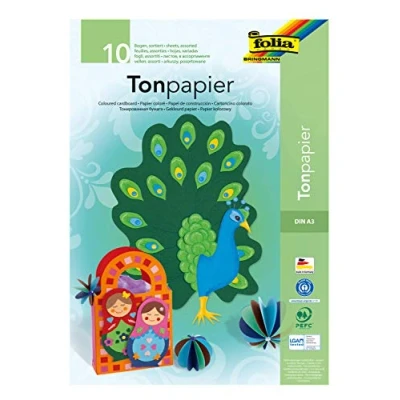 folia 603 Pad with Coloured Paper, 130 g/m², DIN A3, 10 Sheets, Assorted in Colours, Ideal Base for Various Crafts, Such as Window Pictures, Scrapbooking, Card Making
