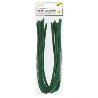 folia 77858 Chenille Wire, Pipe Cleaners, Pack of 10 in Fir Green, Diameter 8 mm and 50 cm Long, Ideal for Children Crafts Design Animals, Figures Other Shapes