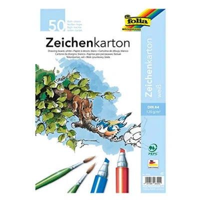 folia 8300 Drawing Card 120 g/m² DIN A4 50 Sheets White Paper for a Wide Range of Creative Ideas