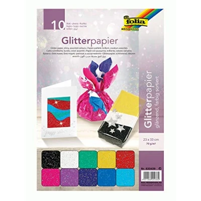 Folia 830409 Glitter Paper 70g/m², 23 x 33 cm, 10 Sheets, Assorted Colours