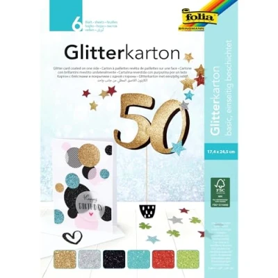 Card finished with glitter on one side Contents: 6 sheets in colour harmonious assortment (basic) Size: approx. 17.4 x 24.5 cm Paper weight: 300 g/m² Ideal for a wide variety of craft projects, Manufacturer: folia