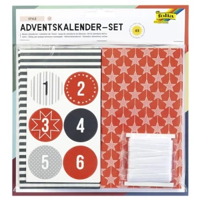 folia 9395 Advent Calendar Set Style, with 24 Food Safe Paper Bags, 10 x 17.5 5.5 cm, 7 m Satin Ribbon and Number Stickers