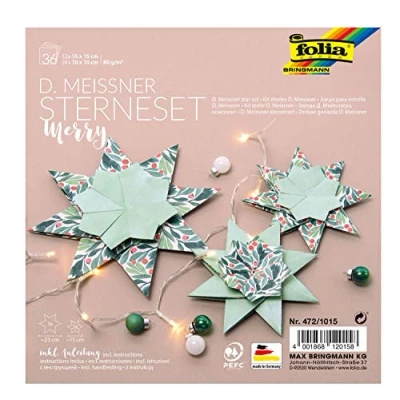folia D. Meissner Merry, Folding Craft Set with 36 Sheets (80 g/m Large and 2 Small Stars, Instructions (English Language not Guaranteed), for Timeless Decoration, Paper, Mint Tones, One Size