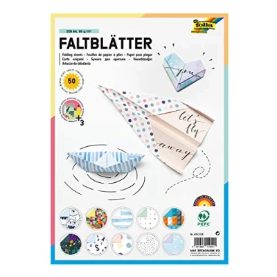 folia Folding Printed Motif, DIN A4, 80 g/m², 50 Sheets, in 10 Different Designs, Includes Instructions (English Language not , Colourful