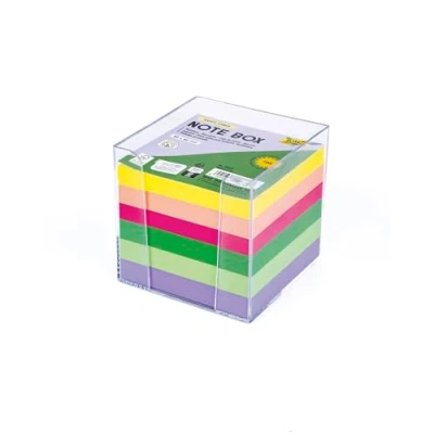 Note box filled with approx. 700 coloured notes in the format 9 x 9 cm 6 bold colours: blue, light green, dark green, red, pink, yellow - ideal for structure Shatter-resistant ABS material, crystal clear, stable and durable for office and home office Compact dimensions 9.6 x 9.6 x 9.1 cm - neatly cut sheets, easily removable Box contents: 1 note box including approx. 700 sheets, refill sold separately