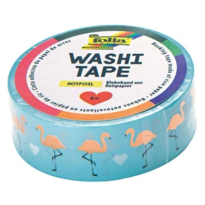 Adhesive tape made from rice paper With Hot Foil Embossed Design: Rose gold Flamingos 1 roll, approx. 5 m x 15 mm Idea for decorating and decoration, Manufacturer: folia