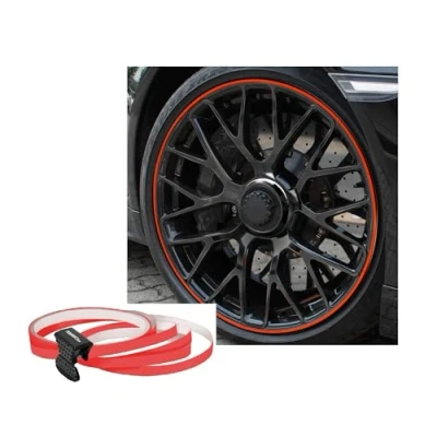 Neon red rim edge sticker strip, ideal for personalizing your vehicle. This pack includes 4 rolls, perfect for quick and easy application. Bring a unique touch to your car with this quality product.