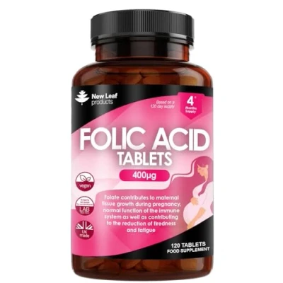 PREGNANCY VITAMINS FOR WOMEN – Our folic acid tablets are formulated for pregnancy, to help avoid nausea associated with swallowing tablets. NHS recommends daily intake of folic acid especially for women who are pregnant or trying for a baby. Supplemental folic acid intake increases maternal folate status. This is important for the healthy development of the foetus, folate contributes to maternal tissue growth during pregnancy. NO ARTIFICAL COLOURS OR FLAVOURS – Our soft vegan chewy tablets are made from real fruit juice and are gluten free and vegan friendly. Each gummy contains 400mcg of folic acid (vitamin B9) and with a 1 gummy per day, each bottle will last two months. FOLATE BENEFITS – Supplemental folic acid intake increases maternal folate status. Low maternal folate status is a risk factor in the development of neural tube defects in the developing foetus. Folate contributes to maternal tissue growth during pregnancy as well as normal blood formation and contributes to the reduction of tiredness and fatigue SAFETY & QUALITY - To uphold the highest standards of safety and quality, our products undergo post-production testing for heavy metals and other unwanted compounds, ensuring full compliance with international regulations. Once testing is complete, products are bottled and packaged in BRC Grade AA certified facilities, guaranteeing that our rigorous quality standards are reliably maintained and delivered to you. Why Choose New Leaf Products? As a family-owned business with extensive experience in formulating and producing our unique range of over 100 vitamin and mineral supplements, we are dedicated to upholding the highest standards of safety and quality. We prioritise environmental sustainability and social responsibility, donating a portion of our sales to global causes. Join our community of over 2 million satisfied customers, where our customers are always our top priority.