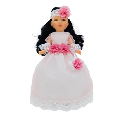 FOLK Doll collection Simona 40 cm. Model 2023 100% Vinyl Long Communion or Party Dress Luxury Special Limited Edition Leather Shoes. Made in Spain.