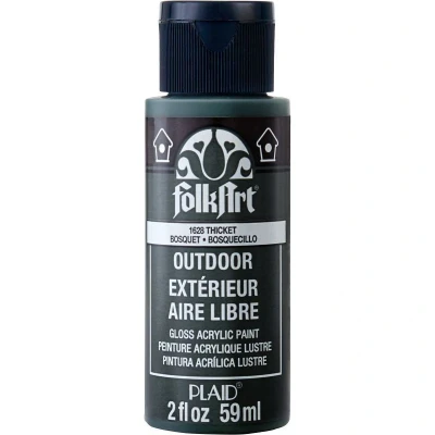 Thicket Rich and creamy premium quality acrylic paint formulated for use outdoors. UV and weather resistant, FolkArt Outdoor is self-sealing and dries to a satin sheen. Paint on a variety of surfaces, including: unpainted or painted metal, tin, terra cotta, wood, stone and concrete. Use for traditional stroke work, stenciling or sponging, colors blend like regular FolkArt acrylic paints. Cures in 48 hours. Size: 2 oz. PE1628 MPN 1628