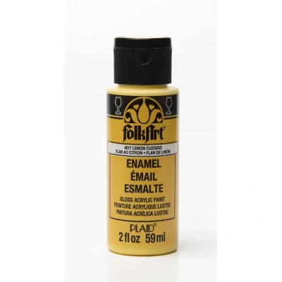 Lemon Custard FolkArt Enamel Paint is a premium, artist-quality acrylic enamel paint, specially formulated for painting on glass and glazed ceramics. Highly pigmented for opaque coverage, FolkArt Enamel Paint offers performance ideal for strokework as well as stenciling projects. Once oven-cured, surfaces painted with FolkArt Enamel paint are even top-rack dishwasher-safe! With a durable, scratch-resistant gloss finish, FolkArt Enamel Paint is water-based and non-toxic making cleanup simple with soap and water. PL2511 PE4017 PE4017 MPN 4017