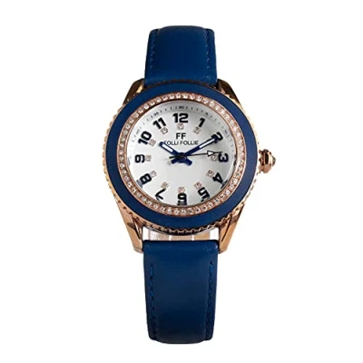 Spectacular product of the brand FOLLI FOLLIE, model WF1B032SSU. Case material/color: Stainless steel/Gold Strap material/color: Leather/Blue Box diameter: 36MM