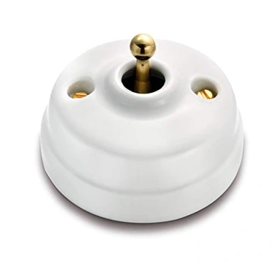 Switch - white porcelain switch with gold finish hand; dimbler range of fontini For use as a single switch or together with another switch to control a light from 2 different points 10 amp mechanism - 230 volts Surface installation mechanism Complete product, Weight: 0.2866009406 pounds, Manufacturer: Fontini