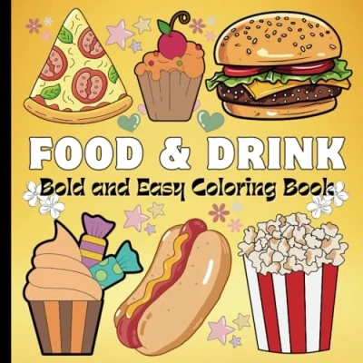 Food and Drink Coloring Book Bold Easy: Simple Designs for Adults, Kids, Seniors, Big Illustrations Relaxation Stress Relief. (Bold Easy Book)