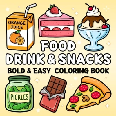 Food Drink & Snacks Bold and Easy Coloring Book: for Kids, Adults Seniors of a Variety Foods, Drinks, Sweets Fruits Relaxation (Cozy Coloring)