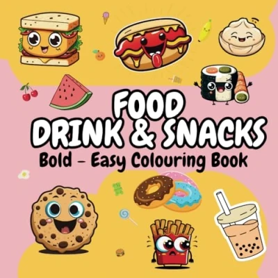 Food, Drinks & Sweets: A Bold Easy Coloring Book for All Ages, Adults and Kids, Easy, Simple Big Designs Stress ... Variety of Foods, Drinks, Desserts Snacks
