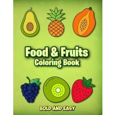 Food & Fruits Coloring Book: Bold And Easy Designs For Adults, Teens, Kids, Simple Big Illustrations With