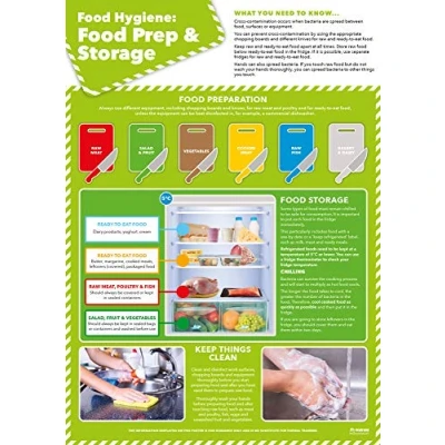 IMPORTANT HEALTH & SAFETY INFORMATION: Presented in structured sections dedicated to ensuring health and safety knowledge, this fantastic Food Hygiene: Food Prep & Storage poster can help all employees to understand the importance of kitchen hygiene. BRIGHT & ENGAGING DESIGNS: Our health and safety charts are bright, colourful and informative. With bold designs and concise information, this health and safety poster is an excellent resource for your office or workplace. ENCOURAGE HEALTH & SAFETY UNDERSTANDING: Engaging and clear images accompany straightforward content, ensuring all employees will gain a comprehensive understanding of health and safety and, most importantly, its role in a successful workplace. LARGE SIZE: IDEAL FOR READING FROM A DISTANCE: Our health and safety posters are a large size, meaning they are highly readable from a distance and will easily complement your work environment. DECORATIVE WORKPLACE DISPLAYS: Our health and safety poster is a bright and engaging wall chart that can greatly improve the décor of your workplace, whilst providing a useful reference point for employees to refresh knowledge about food prep and storage.