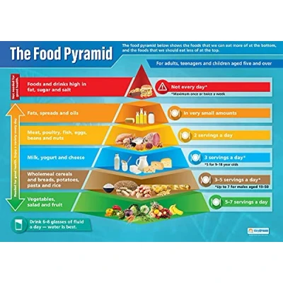 EDUCATIONAL CHART DESIGNED BY TEACHERS: Our Food Pyramid poster helps students to learn, engage and remember more information than ever before. Covering the basics of the main food groups and how they fit into the Food Pyramid, this unique school poster can play a vital role in improving both students' understanding and classroom décor. SUPPLEMENT KNOWLEDGE: Our educational school posters are colourful, beautifully illustrated and contain a huge amount of valuable information. This Science poster is specifically designed to help students gain a greater understanding of the main food groups and how they fit into the Food Pyramid. The wall chart is a great resource for Schools, Classrooms, Science Teachers, Students, Tutors, Home School Parents and Home School Kids. MAKE LEARNING FUN: Engaging, clear and colourful designs and images create a fun learning environment in which students can excel. Our amazing wall posters can help to increase students’ interest towards Science, while recapping any key information they've been taught. LARGE SIZE – IDEAL FOR READING FROM A DISTANCE: Our school wall charts are a generous size, measuring 850mm x 594mm (A1). This ensures all posters are easily readable from a distance. Our educational posters are a fantastic way of brightening and decorating any classroom and can easily complement every type of learning environment. THE UK’s NO. 1 PROVIDER: Brought to you by Daydream Education, the UK's leading provider of educational posters for schools, with a range that spans over 25 subjects across key stages 1 – 5. By combining a bold, visual approach with simple, concise information, we have provided over five million resources to more than 50,000 classrooms worldwide.