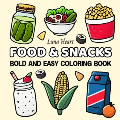 Food & Snacks Bold and Easy Coloring Book: Relaxing Simple Cute Designs for Adults, Teens, Seniors Kids, Large Print Images Featuring ... More (Bold Books)