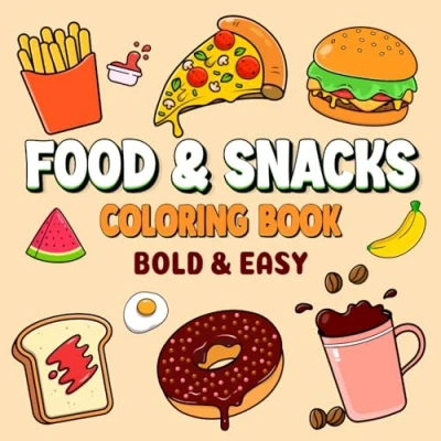 Food & Snacks Coloring Book: 50 Bold And Easy designs (Bold Coloring)