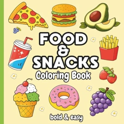 Food & Snacks Coloring Book: Bold Easy Designs for Relaxation Fun, Simple Pages Adults, Teens Kids
