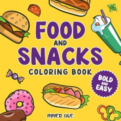 Food&Snacks: Coloring Book for Adults and Kids, Bold Easy, Simple Big Designs Featuring a Variety of Foods, Drinks, Snacks Fruits