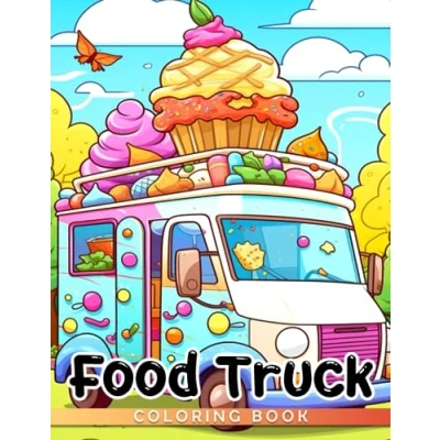 Food Truck Coloring Book: Tasty Foods Delivered By Van Pages With Lovely Illustrations For Kids & Teens Gift Idea Animation Fans Relieving Stress Relaxation