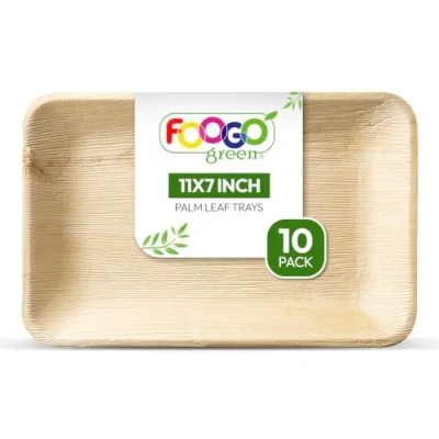PREMIUM QUALITY and STURDY - Our strong disposable palm leaf serving trays do not bend or collapse under weight and you can hold your food confidently with one hand. Suitable for any type of food – hot, cold, dry, wet, sticky, sweet, spicy – you name it! A true GIFT FROM NATURE – Made from naturally fallen Areca palm leaves, FOOGO Green biodegradable serving trays are 100% natural and free from chemicals or harmful ingredients. A GREENER alternative - Our eco friendly disposable serving trays and platters are biodegradable and can be used instead of plastic trays and foil trays that are harmful to the environment. They are also a great alternative to disposable bamboo trays and wooden trays. STYLISH, natural woody texture - Each piece is uniquely rustic and carries the distinct patterns and textures of the palm leaf it is made from. COMPOSTABLE and BIODEGRADABLE - When used dispose them along with food or garden waste. MICROWAVE and FREEZER safe - FOOGO disposable plates are heat and cold resistant, and can be used for both hot and cold foods, making them perfect for any occasion. One-stop-shop for ECO PARTY SUPPLIES - Our range of products includes party plates and cutlery sets, eco-friendly napkins, biodegradable straws, wooden cutlery sets, disposable bowls and serving trays., Weight: 1.3007273458 pounds, Manufacturer: FOOGO Green
