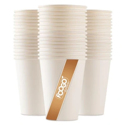 FOOGO Green 200pcs 12oz Disposable Strong Single Wall White Paper Coffee Cups, FSC® Certified, Fully Compostable, Takeaway, Cups for Hot Drinks, Parties, Eco Friendly