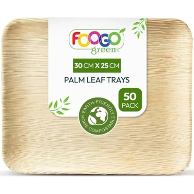 PREMIUM QUALITY and STURDY - Our strong disposable palm leaf serving trays do not bend or collapse under weight and you can hold your food confidently with one hand. Suitable for any type of food – hot, cold, dry, wet, sticky, sweet, spicy – you name it! A true GIFT FROM NATURE – Made from naturally fallen Areca palm leaves, FOOGO Green biodegradable serving trays are 100% natural and free from chemicals or harmful ingredients. A GREENER alternative - Our eco friendly disposable serving trays and platters are biodegradable and can be used instead of plastic trays and foil trays that are harmful to the environment. They are also a great alternative to disposable bamboo trays and wooden trays. STYLISH, natural woody texture - Each piece is uniquely rustic and carries the distinct patterns and textures of the palm leaf it is made from. COMPOSTABLE and BIODEGRADABLE - When used dispose them along with food or garden waste. MICROWAVE and FREEZER safe - FOOGO disposable plates are heat and cold resistant, and can be used for both hot and cold foods, making them perfect for any occasion. One-stop-shop for ECO PARTY SUPPLIES - Our range of products includes party plates and cutlery sets, eco-friendly napkins, biodegradable straws, wooden cutlery sets, disposable bowls and serving trays.